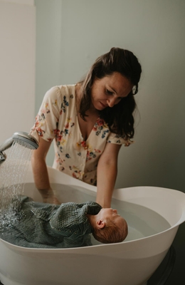 Par beaucoup de douceur, lenteur, de contenance et de réassurance j'accompagne votre bébé. Un bain soin, un bain d’émotions après le périple de sa naissance. L’arrivée au monde n’est pas une étape facile, des émotions peuvent avoir été vécues à leur manière lors de la naissance, de la grossesse ou bien même avant : j’attache une importance aux liens transgénérationnels. C’est alors lui offrir la possibilité de se libérer, de lâcher prise en recréant l’univers de sa vie in utéro et ainsi poursuivre, je l’espère, une vie apaisée tant sur le plan physique que psychologique. Un bain également là pour vous, cher parents, où vos émotions peuvent être déposées et seront accueillies avec beaucoup de bienveillance.